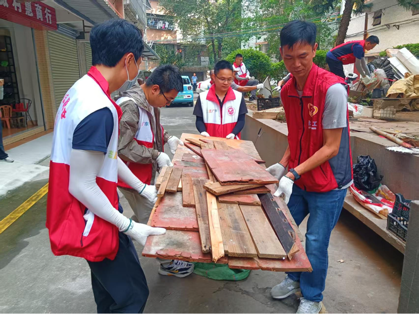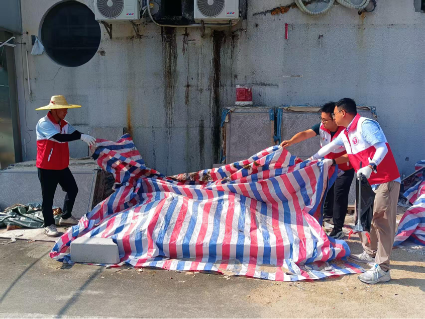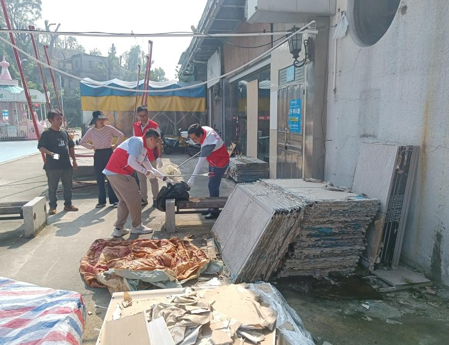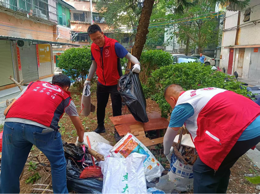 在活动现场,身着统一服装的党员义工们精神饱满、干劲十足,手持扫帚、垃圾夹、铁铲等工具迅速投入清洁行动,清除积水、清理垃圾、消灭蚊虫,共同筑牢社区公共卫生安全屏障。大家分工明确、协作紧密,重点对住宅周边和背街小巷的杂物堆积处、长期闲置空地的卫生死角等进行集中清理,全面清扫积存的生活垃圾与枯枝落叶,逐一排查并清除废弃花盆、破旧水桶、各类积水容器等蚊虫孳生地,确保清洁工作无盲区、无死角。经过一番整治,社区环境面貌焕然一新,卫生状况得到有效改善。