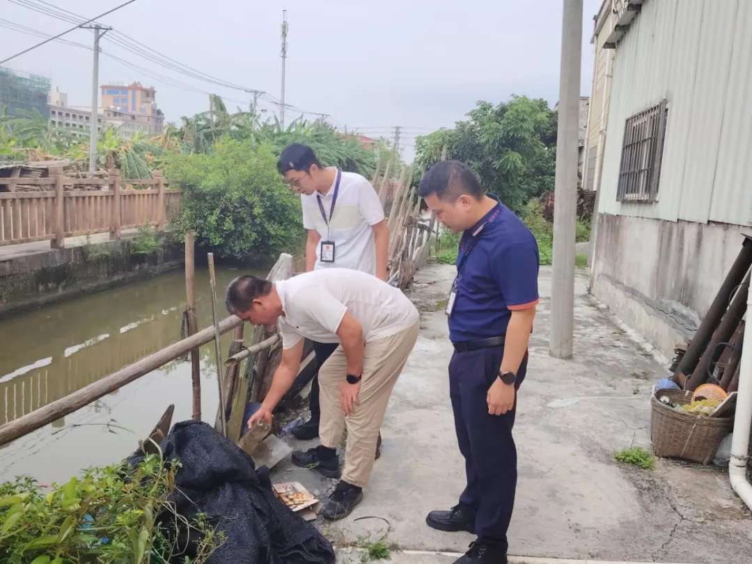 图为崖门镇纪检监察干部深入各村查看环境整治情况,督促相关村做好清积水灭蚊虫工作,确保从源头上减少蚊虫孳生。